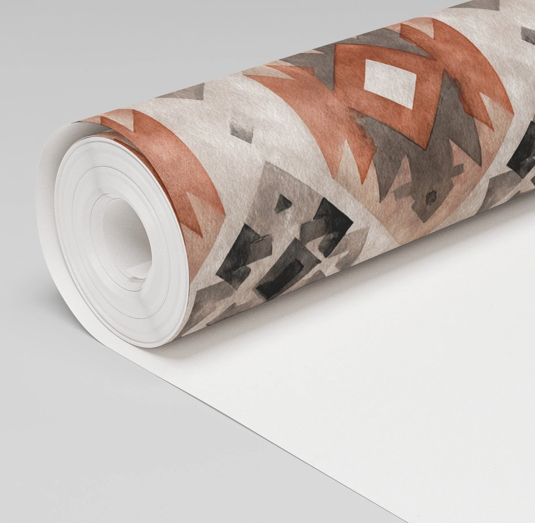Clifford is a geometric wallpaper inspired by southwestern motifs. Large repeating diamonds and angular shapes stand out in rust, charcoal, and beige. Bold and rhythmic, the design makes a strong statement in living rooms, studies, or entryways.