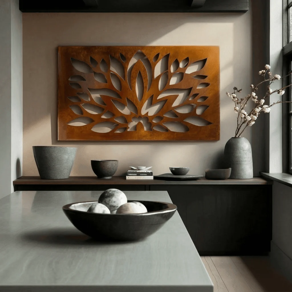 The Bloom radiates with symmetry and movement, its petal-like forms expanding outward in layered rhythm. The cut design captures the moment of unfolding, suggesting both structure and freedom, much like sunlight fanning across an open field.