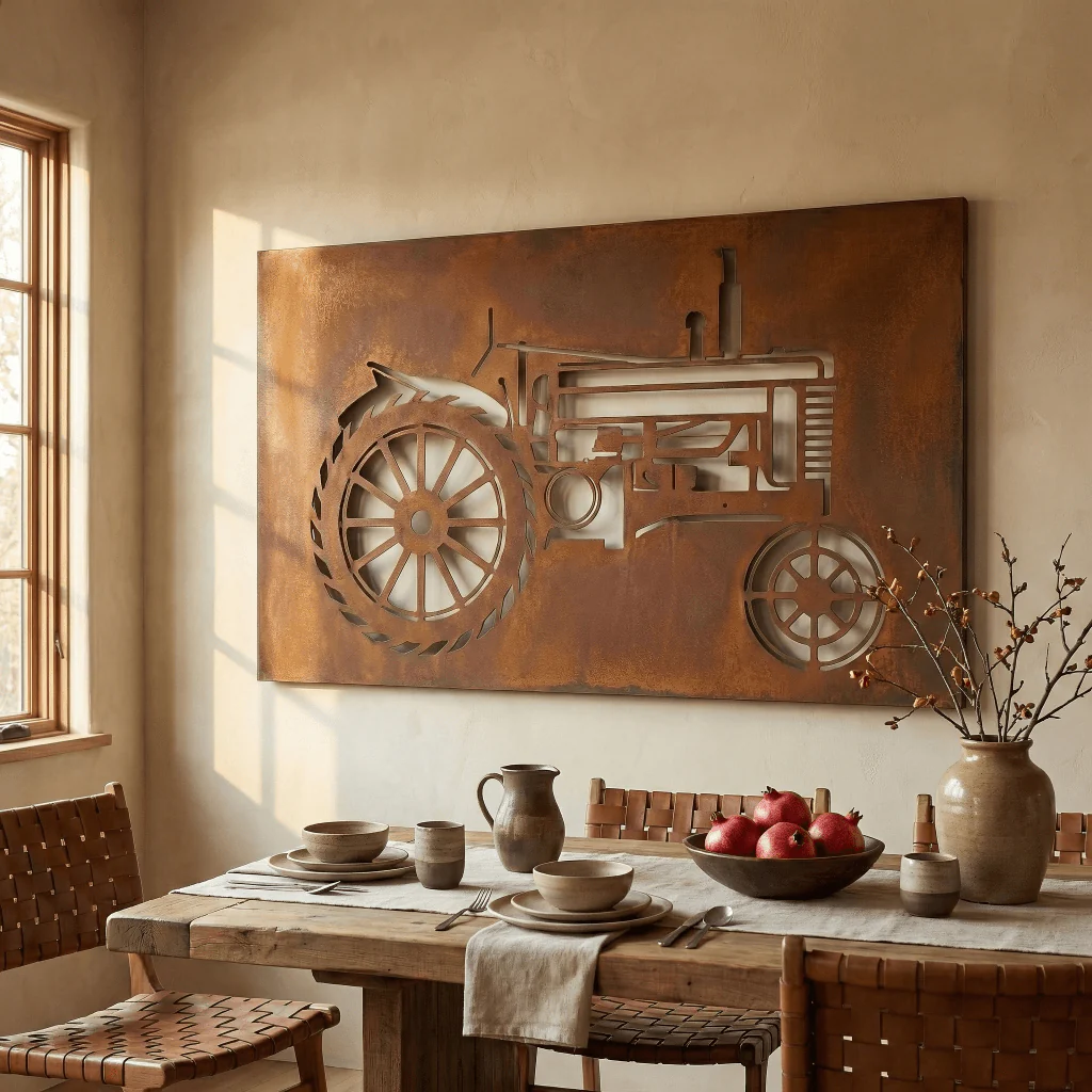 The Tractor is all grit and precision, with a bold cutout profile that celebrates every working part, from the treaded rear wheel to the clean geometry of the frame. It’s a straightforward nod to the land, built for anyone who loves machinery, fields, and the satisfaction of getting things done.